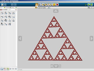 Note that every smaller detail is also a Koch Snowflake, and every little remaining space between the snowflakes also progressively gets nibbled away to form yet more Koch snowflakes as you apply more iterations.
